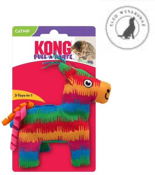 A piñaták színesen megtervezett figurák, tele cukorkával és hagyományosan gyümölccsel a gyermekek születésnapi bulikon. A KONG® Pull-A-Partz Pinata méltó a nevéhez. A színes, recsegő szamár zörgő léggömbökkel van tele, amelyek felfedezésük után fokozzák a játék élvezetét. A felgöndörödött farok a macska összes ösztönére is hat, és játékos ütésre és elkapásra ösztönöz. Így működik egy macskaparti!